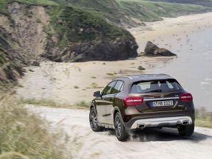Mercedes GLA – Neues Kompakt-SUV aus Stuttgart / Seite 2Zur Markteinführung stehen für den GLA zwei Benziner und ebenso viele Dieselmotoren zur Wahl – allesamt sind Vierzylinder mit Turboaufladung und Direkteinspritzung und verfügen über eine serienmäßige ECO Start-Stopp-Funktion. Das Leistungsspektrum bei den Ottomotoren mit 1,6 und 2,0 Litern Hubraum reicht zunächst von 115 kW (156 PS) im GLA 200 (nur als 2WD-Version erhältlich) bis 155 kW (211 PS) im GLA 250. Der GLA 250 4MATIC sprintet in nur 6,5 Sekunden von 0 auf 100 km/h.Er ist bis zu 235 km/h schnell und benötigt im kombinierten Verbrauch 7,1 l/100 km (151 g CO2/km – vorläufige Werte). Den Diesel-Einstieg bildet der 2,2 Liter große GLA 200 CDI mit 100 kW (136 PS), und einem maximalen Drehmoment von 300 Nm. Er verbraucht 4,3 Liter auf 100 km, entsprechend 114 g CO2/km (vorläufige Werte) und ist in die Effizienzklasse A eingestuft. Der GLA 220 CDI verfügt ebenfalls über 2,2 Liter Hubraum, bringt es aber auf 125 kW (170 PS) und 350 Nm. Bei den Allradversionen kommt serienmäßig ein 7stufiges Doppelkupplungsgetriebe zum Einbau.