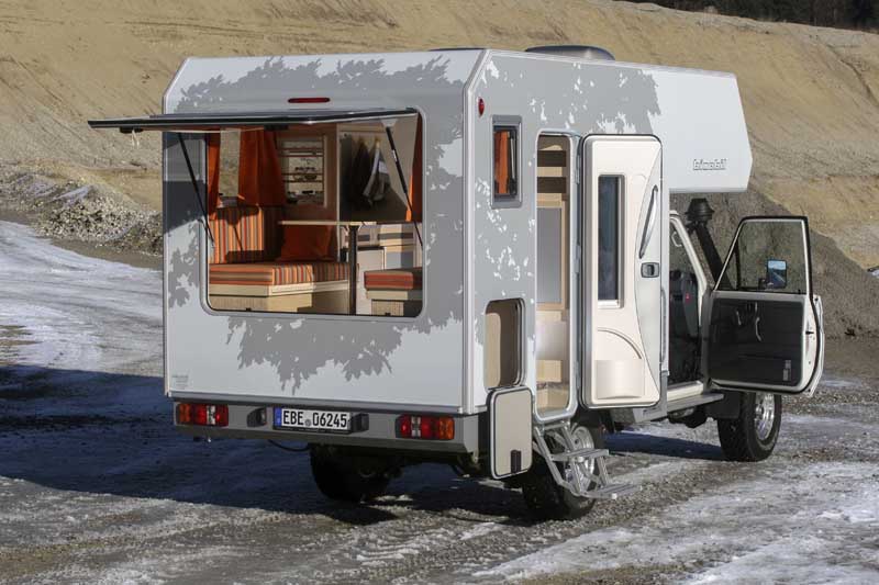 Für ein bimobil typisch ist der solide Möbelbau mit hellem, freundlichem Dekor. Zahlreiche Ablagen, Staufächer sowie Schränke nehmen das Reiseequipment auf, insgesamt verkraftet der EX 280 knapp 400 kg Zuladung. Für Wärme beim Wintercampen in der gut isolierten Kabine sorgt eine Dieselheizung, die autarke Stromversorgung übernimmt eine 130 Ah starke Aufbaubatterie, die gegen Aufpreis über eine Solaranlage auf dem Dach gespeist werden kann. Wie alle Wohnkabinen aus dem Hause Bimobil ist auch der neue Aufbau wahlweise als fest auf dem Chassis montierte oder abnehmbare Einheit bestellbar. Der Toyota HZJ 79 ist dank seiner robusten Konstruktion mit Leiterrahmenchassis und Starrachsen sowie einem 90 Liter großen Serientank vor allem in der Globetrotter-Gemeinde äußerst beliebt. Der 4,2-Liter Sechszylinder-Diesel, der 96 kW/131 PS bei 3.800 U/min leistet und sein Maximaldrehmoment von 285 Nm bei 2.000 Touren generiert, gilt als zuverlässiges Triebwerk. Ebenso wie die Antriebsmechanik mit zuschaltbarem Vorderradantrieb und einer Geländeuntersetzung von 2,295:1. Offroad-Spezialist „Extrem Fahrzeuge GmbH“ im bayrischen Beuron-Hausen bietet zudem ein Vielzahl expeditionstauglichen Zubehörs an – darunter auch einen manuell zuschaltbaren Zusatztank. |