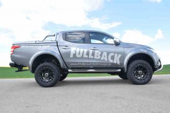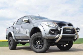 Fiat Fullback „Beast“ von delta4x4 – Eyecatcher für den Norden23.05.2017 Die Nordlichter unter uns werden Fricke Nutzfahrzeuge kennen. Allen anderen sei erklärt, dass Fricke einer der großen Fiat-Nutzfahrzeughändler in Deutschland ist – mit einem Verkaufsgebiet, das sich von Cuxhaven bis Walsrode und von Harburg bis Emden erstreckt.Doch sein Fahrzeug-Pool ist eher nutzorientiert und so kam Fricke auf die Idee, den neu ins Programm gekommenen Fiat Fullback zum Eyecatcher umbauen zu lassen. Und da führte den Fiat-Spezialisten sein Weg – praktisch zwangsläufig – vom hohen Norden in den Süden der Republik, zum OffRoad-Tuner delta4x4 in Unterumbach. Für die Mutation vom Kleinlaster zum attraktiven Beast legt delta 4x4 zunächst die Karosserie des Fullback mit Hilfe eines Body-Lift-Kits um exakt zehn Zentimeter höher und montiert vier Kotflügel-Verbreiterungen von jeweils fünf Zentimetern. Nun ist in den Kotflügeln genügend Platz für große Räder geschaffen. Auf den matt-schwarzen KlassikB Felgen im attraktiven Acht-Loch-Design der Größe 9 x18 Zoll hat delta4x4 rustikale Baja ATZ-Reifen der amerikanischen OffRoad-Kultmarke Mickey Thompson im Format 305/60 R 18 montiert. Diese Kombination steht dem Fiat-Pickup nicht nur optisch sehr gut, sondern erhöht auch seine Geländegängigkeit: Die Höherlegung sorgt für die im OffRoad-Einsatz benötigte Bauchfreiheit. Die grobstolligen All-Terrain-Reifen bringen auch auf Schotter und im rutschigen Terrain eine optimale Traktion und der austauschbare Anfahrschutz verhindert Beschädigungen an der Felge im harten Geländeeinsatz. Der Hingucker an der Front ist der in Edelstahl handpoliert strahlende Frontbügel. Den letzten Feinschliff gibt delta4x4 seinem Beast-Umbau durch die für die großen Reifen nötige Kotflügelverbreiterung und einen Laderaumbügel aus Edelstahl. In diesem Outfit ist das Fiat Fullback Beast von delta4x4 zukünftig der Eyecatcher unter den Nutzfahrzeugen im hohen Norden. Das 100mm Body-Lift-Kit ist bei delta 4x4 für 1. 590€ erhältlich, der Komplettrad-Satz (bestehend aus vier 9x18 Zoll großen Klassik oder KlassikB-Felgen mit Reifen im Format 305/60R18 kostet ab 2900 €. Die straßenzugelassenen Front- und Laderaumbügel sind bei delta 4x4 für 580 € bzw. 590 € erhältlich, die Radhaus-Verbreiterungen schlagen ab 1530 € zu Buche. Die HighPower LED-Zusatz-Weitstrahler des japanischen Lichtspezialisten PIAA kosten mit Montagematerial für den FrontBügel 600 Euro. |