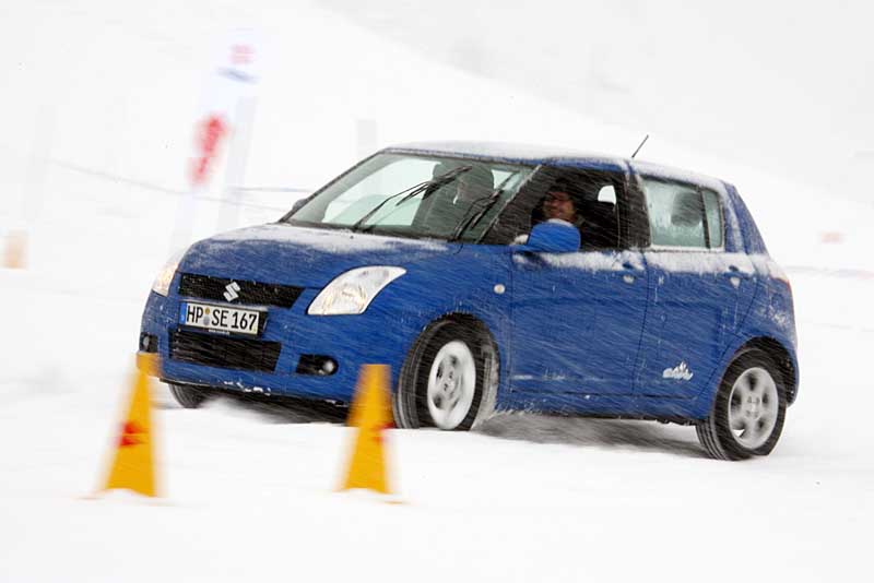 Allrad im Winter - Die verschiedenen Allrad-Antriebssysteme im Vergleich - Seite 4Eine exakt entgegengesetzte Fahrweise ist bei den beiden straßenorientierten Allradlern angesagt. Mit Anlauf und viel Schwung meistern Swift und SX4 auch die steilsten Tiefschneestrecken erstaunlich leichtfüßig. Und im weichen Schnee stellt selbst die geringere Bodenfreiheit kein großes Problem dar. Zwar scharrt und kratzt es am Unterboden immer wieder, doch es kann ja in der weißen Pracht nicht viel kaputt gehen - im Gegensatz zum klassischen Geländeeinsatz, wo sich eine solche Fahrweise in aller Regel verbietet. Viel Schwung vor jedem Steilhang benötigt speziell der Swift mit seiner Kombination aus kleinem Motor und langer Straßenübersetzung. Doch sein Allrad überzeugt im Tiefschnee. Dank des großen Drehzahlunterschiedes zwischen der permanent angetriebenen Vorderachse und der mitgezogenen Hinterachse schließt die Viscokupplung schnell und stellt so konsequent den Kraftschluss zu den Hinterrädern her. Leicht und handlich prescht der Swift 4x4 durch jede Tiefschneestrecke - auch im Drift, wenn der Fahrer nur konsequent genug auf dem Gaspedal stehen bleibt, schließlich stört hier kein ESP das fröhliche Treiben.