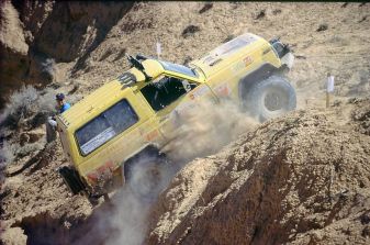 Geländewagen Fahrschule Teil 4 - Bergauf, bergab - Seite 6Jetzt ist es ratsam, ganz bewusst zu handeln: Den Geländewagen mit der Fußbremse halten, bei noch stehendem Motor den Rückwärtsgang einlegen und die Kupplung loslassen. Nun sollten Sie – das ist gewöhnungsbedürftig – ohne die Kupplung zu treten den Anlasser betätigen und, während der Motor nun versucht anzuspringen, die Fußbremse lösen. Nun geht es mit der vollen Bremswirkung des Motors, nicht der Fußbremse, in der Falllinie zurück nach unten. Ein zu niedriger Gang berghoch führt zum gleichen Ergebnis: Der Fourwheeler bleibt auch diesmal wieder mitten im Steilhang hängen – wegen des fehlenden Schwungs mit scharrenden Rädern. Auch jetzt bleibt nur der Rückzug ins Tal – denn wenn die Reifen keine ausreichende Traktion mehr aufbauen, ist ein Anfahren selbst unter Einsatz der elektronischen Hilfsmittel moderner Offroader (Berganfahr-Assistent etc.) kaum mehr möglich. Im nächsten Versuch geht es dann im höheren Gang und mit mehr Anlauf in die Steilpassage hinein. Aber Achtung: Kurz vor dem Ende des Steilaufstiegs runter vom Gas, damit der Geländewagen oben an der Kuppe des Hangs nicht abhebt.