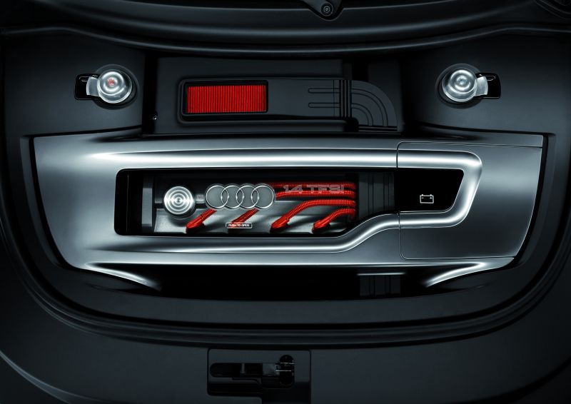 High Tech im Kompaktformat - Audi metroproject quattro - Seite 4Der Antrieb Unter der Motorhaube des Audi metroproject quattro arbeitet ein Vierzylinder-TFSI mit 1,4 Liter Hubraum und Turboaufladung. Dieser Motor ist eine Evolutionsstufe des Aggregats, das vor wenigen Monaten erst sein Seriendebüt im Audi A3 gegeben hat. Während der 1.4 TFSI dort 92 kW (125 PS) mobilisiert, leistet es in der Studie 110 kW (150 PS) bei 5.500 1/min. Sein maximales Drehmoment von 240 Nm mobilisiert dieser Motor über das breite Drehzahlband von 1.600 – 4.000 1/min. Für den neuen 1.4 TFSI wird dieses Konzept konsequent weiter genutzt, um ein Höchstmaß an Effizienz und Leistungsfähigkeit zu verbinden. Mehrloch-Einspritzdüsen sichern eine sehr homogene Gemischbildung und die äußerst effiziente Verbrennung. Auch die Reduktion der Schadstoffe wird so wirkungsvoll unterstützt. Für die Kraftübertragung an die Vorderräder sorgt das sportliche Direktschaltgetriebe Audi S-tronic. Es erlaubt dem Fahrer, die Gänge ohne Kupplungspedal in Sekundenbruchteilen und ohne Zugkraftunterbrechung zu wechseln; auf Wunsch absolviert das Getriebe die Schaltvorgänge auch vollautomatisch. Will der Fahrer die Gänge manuell wechseln, so kann er dies mit Hilfe lenkradfester Schaltwippen tun. Der Schaltknauf auf der Mittelkonsole erlaubt zudem das Einlegen von Rückwärtsgang und Parkstufe.