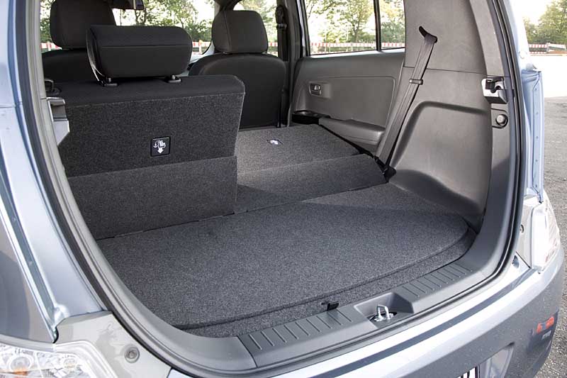 Futuristisch, der Kleine - Daihatsu Materia 1.5 Eco 4WD - Seite 2Wenn die Rücksitzbank in der vordersten Position einrastet, entsteht ein Gepäckraum mit einer Größe von 294 Liter Volumen – gleichzeitig lassen sich die Rücksitzlehnen im Verhältnis 60:40 geteilt umklappen. So entsteht hinter der niedrigen Ladekante ein nahezu ebener Laderaum von 619 Liter bis zur Unterkante der Fenster. Bei dachhoher Beladung steht sogar ein Kubikmeter Platz zur Verfügung. Für den Transport besonders langer Gegenstände kann zusätzlich die Lehne des Beifahrersitzes flach nach hinten geklappt werden. Dies ermöglicht eine Ladelänge von bis zu 2,2 Meter. Das Interieur des Daihatsu Materia wird geprägt von futuristischem Design. Wie eine Kommandozentrale präsentiert sich die geschwungene Armaturentafel. Einen besonderen Akzent setzt der Tachometer mit integriertem Drehzahlmesser, der sich in der Mitte des Armaturenbretts befindet. Die in futuristischem Blau illuminierten analogen Acryl-Anzeigen werden mit digitaler Tankanzeige und Kilometerzähler kombiniert, und auch die Türgriffe und Lautsprecher sind nachts blau beleuchtet.
