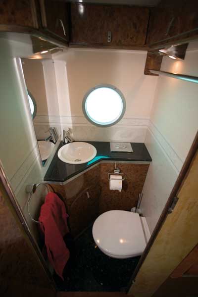 ausstellbare GfK-Klappen integriert. Die beiden Bullaugen im Bad und am