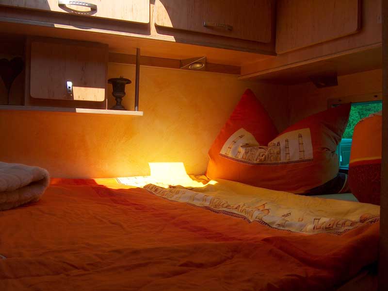 C.R.S. Labrador – Der Andersartige - Seite 3Anders dagegen bei der Geräte-Installation. Hier favorisiert der Diplom-Ingenieur für Gebäudetechnik diverse Konzepte und Materialien aus dem Wohnungs- und Hausbau. So führt er die Wasserversorgung in Edelstahlrohren mit lösbaren Verbindungen aus. Die Abwasserleitungen verlegt er aus verschweißten, starren PE-Rohren mit 50 Millimeter Durchmesser. Die Armaturen entsprechen mit Rückschlag- und Sicherheitsventil dem Standard der Gebäudetchnik. Ausstattung, Tankkapazitäten, Grundriss und alle sonstigen Details richten sich – auch das ist in der Branche gängige Praxis – nach den individuellen Vorstellungen und Wünschen des Kunden. Beim Vorführ-Modell 4011 rd hat sich Nösch für die autarke Versorgung auf 400 Liter Diesel (bis zu 700 Liter sind möglich), 320 Liter Frischwasser, zwei Gel-Batterien mit je 145 AH sowie einen Wechselrichter mit 1.700 Watt festgelegt. Beim Grundriss hat er sich für ein 130 Zentimeter breites Doppelbett auf einem Froli-Unterbau entschieden, das hinten quer über einem großen Außenstau- und Technikraum installiert ist.