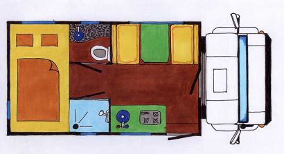 mit PVC-Belag. Einstiegtür und Klappen aus Wandmaterial, Fenster