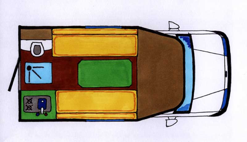 Füllmengen: Kraftstoff: 500 l, Frischwasser: 120 l, Abwasser: 50 l, Boiler: 10 l, Fäkalien: 17 l, Gasvorrat: 1 x 11 kg