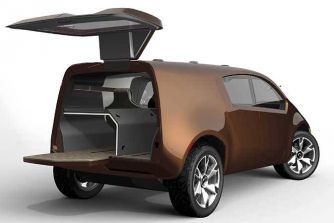 Nissan Bevel – das SUV für Alltagshelden - Seite 3Auch der Instrumententräger erleichtert das Einsteigen, indem er ebenso wie die Pedale bei geöffneter Fahrertür automatisch zehn Zentimeter nach vorne fährt. „Der Einsatz eines beweglichen, schwebenden Instrumententrägers wurde erst durch die by-wire-Systeme für Drosselklappe, Bremsen und Lenkung möglich", erklärt Campbell. „Sie erlaubten uns auch, die vordere Spritzwand um 30 Zentimeter vorzuverlegen, was den zur Verfügung stehenden Fußraum deutlich erweitert." Die zweite Zone läuft unter dem Label „Command Central", zu Deutsch: Kommandozentrale. Sie soll den Bevel-Piloten über ein voll digitalisiertes Cockpit und verschiedene Bildschirme mit der Außenwelt verbinden: Die an den äußeren Ecken postierten LCD-Monitore übertragen die Bilder der Außenbordkameras. Der dritte Lebensbereich im Bevel ist die Nutzfahrzeug-Zone. Hier geht es praktisch und rustikal zu. Der Beifahrersitz und die hinteren Stühle sind dank eines Rahmens aus Aluminium betont leicht umzulegen. Da sie ohnehin die meiste Zeit in dieser Stellung verharren, wählten die Interieur-Designer strapazierfähige Bezüge aus – die Rückseiten der Sitze sind sogar mit dem gleichen Material wie der Ladeboden bezogen. Als Antrieb für den Bevel käme laut Nissan ein durchzugsstarker und umweltfreundlicher 2,5-Liter-V6-Motor mit angeschlossenem Hybridsystem infrage. Die Steuerung von Lenkung, Drosselklappe und Bremsen erfolgt über drahtlose „by wire"-Systeme.