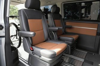 Vier Premieren stehen bei Volkswagen Reisemobile auf dem Stand beim Caravan-Salon (24.8.-2.9.2007) in Düsseldorf - Seite 4Zwei Rekordfahrten auf der Strecke zwischen Alaska und Feuerland stehen namentlich Pate für die in Düsseldorf gezeigte Studie Multivan PanAmericana. Mit einem serienmäßigen Frontspoiler und Seitenschwellern sowie einer Schwellerbeklebung wirkt der PanAmericana robust und den Vorkommnissen eines eventuellen Geländeeinsatzes gewachsen. Abgedunkelte Rückleuchten unterstreichen das exklusive Offroad-Outfit, während der Schriftzug auf der Schiebetür mit der Karte des amerikanischen Kontinents Auskunft über seine namentliche Herkunft gibt.