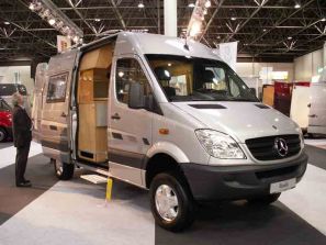Reise-Sprinter mit Allrad: Rondo von CS-Reisemobile Auf dem Mercedes Sprinter mit Zuschalt-Allrad hat CS-Reisemobile aus Henstedt mit seinem Modell „Rondo“ das erste 4x4-Modell in seiner Palette vorgestellt. Das klassische Zweipersonenmobil mit Serienhochdach und quer im Heck eingebautem, 195 x 142 cm großem Doppelbett basiert auf dem Sprinter-Kasten mit 5,91 Meter Länge und maximal 3,5 Tonnen Gesamtgewicht. Clou ist das ausfahrbare Waschbecken in der kleinen Sanitärzelle, ansonsten präsentiert sich der Grundriss traditionell praxisorientiert mit einer Küchenzeile sowie einem Kleiderschrank auf der rechten Seite sowie einer Halbdinette hinter dem Fahrerhaus. Der Grundpreis setzt bei 53.900 Euro an, der Allradantrieb schlägt mit 9.394 bzw. 9.990 Euro (für die Variante mit Untersetzung) zu Buche. Je nach Gusto sind auch andere Grundrissvarianten des norddeutschen Kastenausbau-Spezialisten mit den Allrad-Sprinter 2,2-Liter CDI-Modellen kombinierbar.