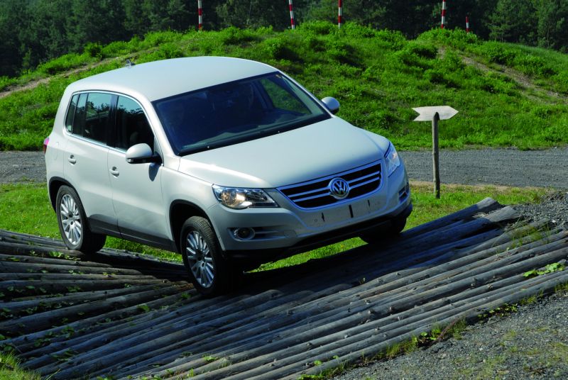 Der Volkswagen Tiguan setzt mit seiner hohen Fahrdynamik neue Maßstäbe in seinem Segment - Seite 3Ganz bewusst wird der in der Ausstattungsversionen Trend&Fun, Sport&Style und Track&Field angebotene Tiguan in zwei Karosserievarianten auf den Markt kommen: Die Versionen Trend&Fun und Sport&Style wurden gezielt auf den überwiegenden Onroad-Einsatz ausgelegt - man erkennt sie leicht an der stärker herunter gezogenen Kühlerfront. Ihr agiles, sicheres und höchst komfortables Fahrverhalten gleicht dem eines Pkw. Gleichwohl scheuen auch diese Tiguan weder Geländefahrten noch hohe Anhängelasten. Der Tiguan Track&Field wurde speziell für das Leben neben den asphaltierten Pisten konzipiert. Anders als die Versionen Trend&Fun und Sport&Style weist dieser besonders abenteuerfreundliche Tiguan vorn einen extremeren Böschungswinkel (28 statt 18 Grad) auf (maximaler Winkel, ohne dass der Wagen vorn aufsetzt). Serienmäßig verfügt der Tiguan Track&Field zudem über einen neu entwickelten Offroad-Modus, der auf Knopfdruck eine ganze Armada von Assistenzsystemen weckt, um Fahrten im Gelände besonders sicher zu machen.