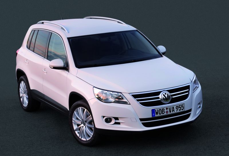 Der Volkswagen Tiguan setzt mit seiner hohen Fahrdynamik neue Maßstäbe in seinem Segment - Seite 8Ausstattungslinie Sport&Style Der sehr exklusive Tiguan Sport&Style bietet über die Details des Tiguan Trend&Fun hinaus unter anderem folgende Details: 17-Zoll-Leichtmetallfelgen „Los Angeles“ mit Reifen der Dimension 235/55R17, Dachreling in Chrom, Kühlerschutzgitter mit Chromleisten und Fenstergrafik in Chrom, abgedunkelte Scheiben ab den B-Säulen (zu 65 Prozent lichtabsorbierend), Sportsitze mit in der Höhe einstellbaren Lordosenstützen, Mittelkonsole mit klappbarer und höheneinstellbarer Armlehne, klappbarer Beifahrersitz, Schubladen unter den Vordersitzen, Klapptische und Ablagetaschen an den Rückseiten der Vordersitze, Leder für Lenkrad, Schaltknauf und Schaltmanschette, Stoffsitze mit Alcantara-Applikationen, eine Geschwindigkeitsregelanlage und die Reifendruckkontrollanzeige.