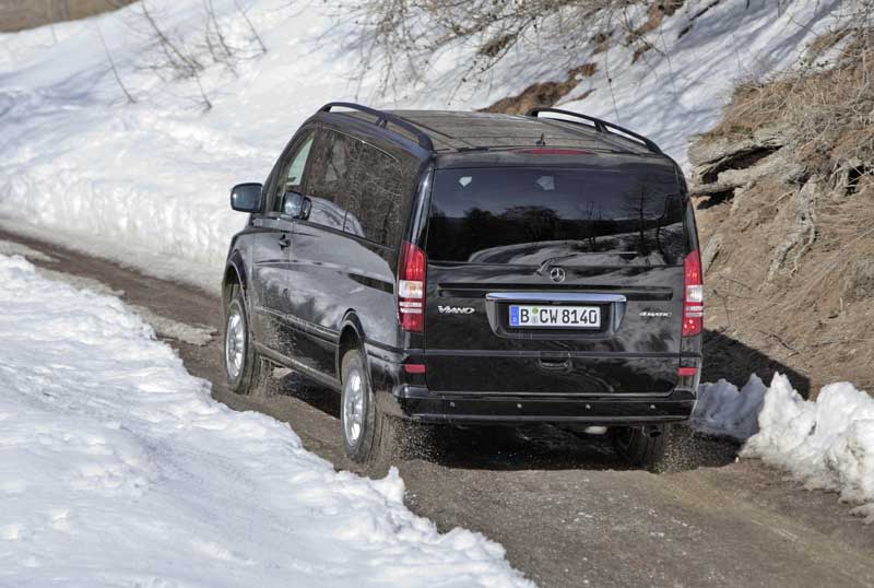 Mercedes-Benz Vans: Allrad-Offensive mit Viano, Vito, Sprinter und Vario / Seite 2Das erleichtert beispielsweise das Anfahren an einer teils nassen, verschneiten oder vereisten Steigung oder gestaltet prekäre Ausweichmanöver bei ebensolchen Straßenverhältnissen fahrdynamisch wesentlich unkritischer – wie sich bei ersten fahrpraktischen Eindrücken auf einem Sicherheitsparcours nachvollziehen ließ. Allerdings arbeitet das System mit einer merklichen Verzögerung und reagiert im Extremfall – wie bei drei schlupfenden Rädern – nur auf nachdrücklichen Gasbefehl. Für Fahrer von Wohnwagen- und Lastenanhängern interessant: Die mit dem „4ETS“ kombinierte Anhängerstabilisierung, die der Viano/Vito-Käufer als Beigabe mit der ab Werk georderten Kugelkopfkupplung bekommt. Sie bremst die Pendelbewegungen eines schlingernden Anhängers äußerst zügig wieder ein. Für den leichten Geländeeinsatz sind Viano 4matic und Vito 4x4 dank eines dezent höhergelegten Chassis gerüstet: Für die Vorderachse nennt Mercedes allerdings eine Bodenfreiheit von lediglich asphalttauglichen 150 mm, für die Hinterachse dagegen rund 210 mm. Der vordere Böschungswinkel beträgt bei allen Radständen 20 Grad, der hintere bei der Version mit kurzem Radstand und kurzem Überhang 28 Grad sowie 19 Grad beim langen Chassis. Auch mit dem Rampenwinkel von 19 Grad bei der kurzen Ausführung kann man sich im leichten Gelände akzeptabel bewegen, wie der Ausflug durch die Kiesgrube zeigte. Als Motorisierung stehen je ein 2.0- sowie 2.2-Vierzylinder-Common-Rail-Turbodiesel mit variabler Schaufelradgeometrie zur Wahl: Der eine 100 kW/136 PS, der andere 120 kW/163 PS stark – jeweils bei 3.800 U/min. Beide Triebwerke sind langhubig ausgelegt und präsentieren sich damit als durchzugsstark mit einem Maximaldrehmoment von 310 bzw. 360 Newtonmeter, das ab 1.400 bzw. 1.600 U/min anpackt. In puncto Kraftübertragung steht bei den Allrad-Versionen von Viano und Vito ausschließlich eine Fünfgang-Automatik mit manueller Schaltoption zur Verfügung. Der sechs- bis achtsitzige Viano 4matic ist in drei Karosserielängen – von knapp 4,77 bis 5,24 Meter – und zwei Ausstattungspaketen sowie als Freizeitmobil Marco Polo zu haben. Die Preisleiter beginnt bei 44.644,43 Euro. Der Vito 4x4, ebenfalls in den drei Längenversionen als Kombi, Mixto (mit Sitz- und Laderaum) und Kastenwagen zu haben, steht ab 33.911,43 Euro (inkl. MwSt.) in der Preisliste.