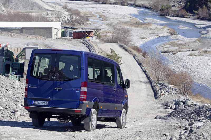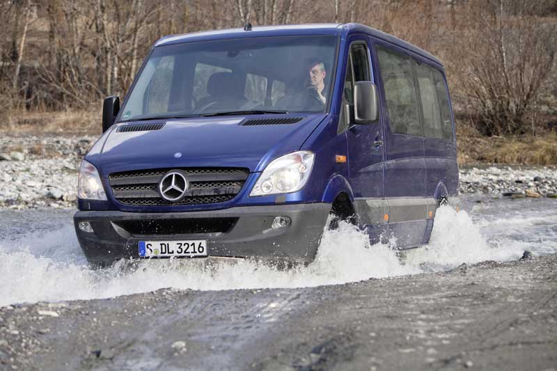 Mercedes-Benz Vans: Allrad-Offensive mit Viano, Vito, Sprinter und Vario / Seite 3Der Mercedes-Benz Sprinter 4x4 ist seit jeher vor allem bei Aus- und Aufbauern von Wohn- und Expeditionsmobilen beliebt: Der Marktanteil der Allradversionen in der Baureihe lag im vergangenen Jahr bei 35 Prozent. Das soll, so Transporter-Geschäftsleiter Mornhinweg, auch 2011 zumindest so bleiben. Die technischen Eckdaten für den anvisierten Verkaufserfolg des Sprinter 4x4 sind bekannt und bewährt: Der Vorderachsantrieb ist elektrisch per Knopfdruck zuschaltbar, wobei ein Stirnradpaar am Verteilergetriebe via einem Elektromotor eingerückt wird. Die variable Kraftverteilung zwischen den Rädern einer Achse regelt – analog zu den allradgetriebenen Versionen der Viano/Vito-Baureihe – das elektronische Traktionssystem „4ETS“. Als zusätzliches Feature für den gröberen Geländeeinsatz kann der Sprinter 4x4-Kunde eine per Tastendruck aktivierbare Getriebeuntersetzung (1:1,42) ordern, die die Zugkraft um rund 40 Prozent erhöht. Als zusätzliche Potenzierung der Geländetalente ist das Chassis des Sprinter 4x4 vorne um 110 mm und hinten um 80 mm angehoben, was beim Kastenwagen in Böschungswinkeln von 28 bzw. 27 Grad sowie einer Wattiefe von 610 mm resultiert. Seit 2009 arbeitet eine neue Motorengeneration in der Sprinter-Palette, aus der drei Aggregate für die Allrad-Version adaptiert wurden: Zwei Vierzylinder- und ein V6-Diesel, die als durchzugsstark sowie verbrauchsgünstig gelten und dank Oxy-Kat, Abgasrückführung sowie Partikelfilter die Abgasstufe Euro 5 erfüllen. Die beiden 2,2-Liter Triebwerke leisten mit je zwei in Reihe geschalteten Turboladern 95 kW (129 PS) bzw. 120 kW (163 PS) bei jeweils 3.800 U/min und überzeugen mit einem Maximaldrehmoment von 305 und 360 Nm ab 1.200 bzw. 1.400 U/min. Der Dreiliter-Sechszylinder gibt seine 140 kW (190 PS) ebenfalls bei 3.800 Umdrehungen pro Minute ab und generiert zwischen 1.400 und 2.400 Umdrehungen gute 440 Newtonmeter Drehmoment.