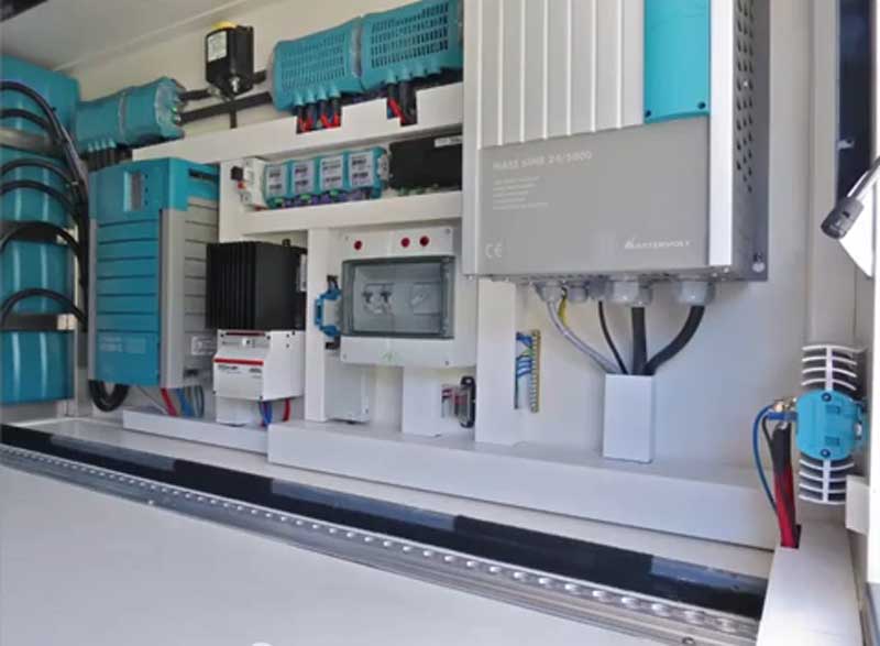 Actionmobil Global XRS 7200: Komfort für Weltenbummler - Seite 3Natürlich darf eine Multimedia-Anlage zur optischen wie akustischen Unterhaltung nicht fehlen: An der Rückwand des Waschraums „klebt“, zum Wohnbereich hin, ein großer TV-Flachbildschirm, die Beschallung übernehmen eine Lautsprecher-Unit von Bose. Waschmaschine, Dampfgarer, Media-Equipment, Beleuchtung… eine Standard-Bordelektrik würde da in die Knie gehen. Actionmobil hat eine Einheit aus leistungsfähigen, aber extrem leichten Lithium-Ionen-Batterien in der Heckgarage eingebaut, an der Wand zum Wohnraum hin ist die Steuerungsanlage für die komplette Elektrik installiert. Und dann ist da noch der quasi krönende Abschluss am Heck des Actionmobil Global XRS 7200: Hoch oben auf einer Trägerplattform, die sich hydraulisch herauf- und herunterfahren lässt, parkt Jack's Ducati Multistrada. Das große Bike braucht er, meint der Kanadier, um beispielsweise mal eben schnell zum Brötchenholen zu fahren. Ein Bäcker ist auf dem Alaska-Feuerland-Highway nicht immer um die Ecke.